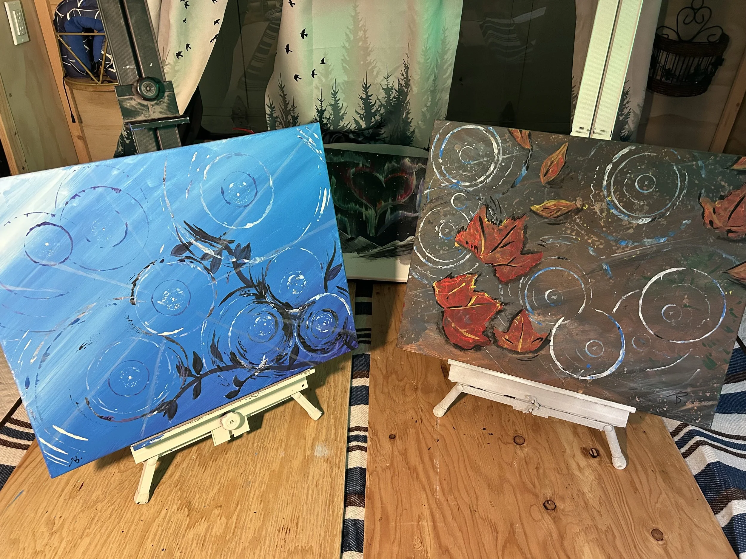 Each participant will create 3 small pieces on flat wood panels and make a larger 8×8 framed wood panel.